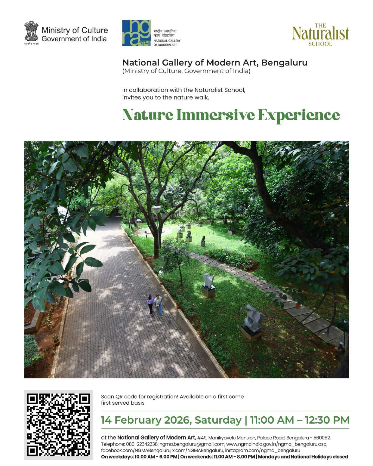 - Regular gallery walks twice every week: Wednesdays and Saturdays at 4.00 pm